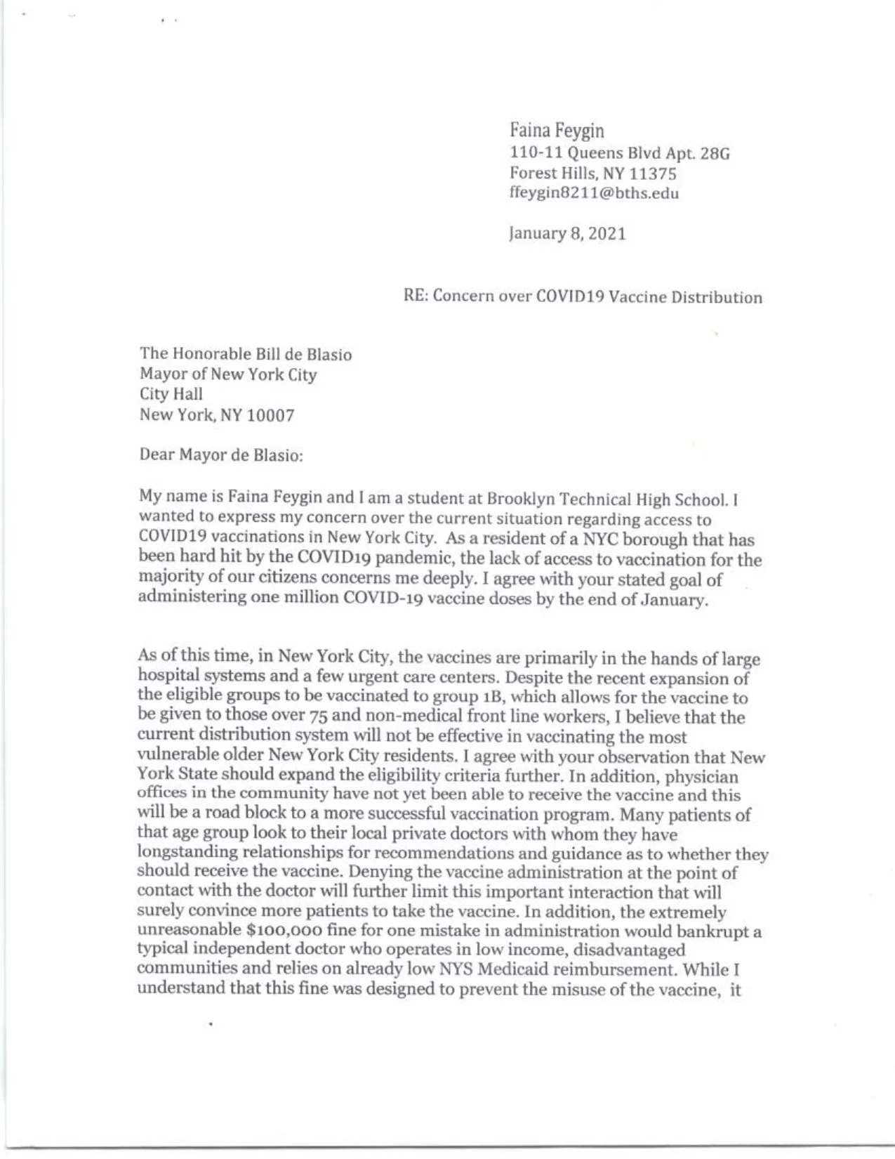 Letter to Mayor De Blasio - Advocating for an Equitable Vaccine Allocation System for Immigrant Communities